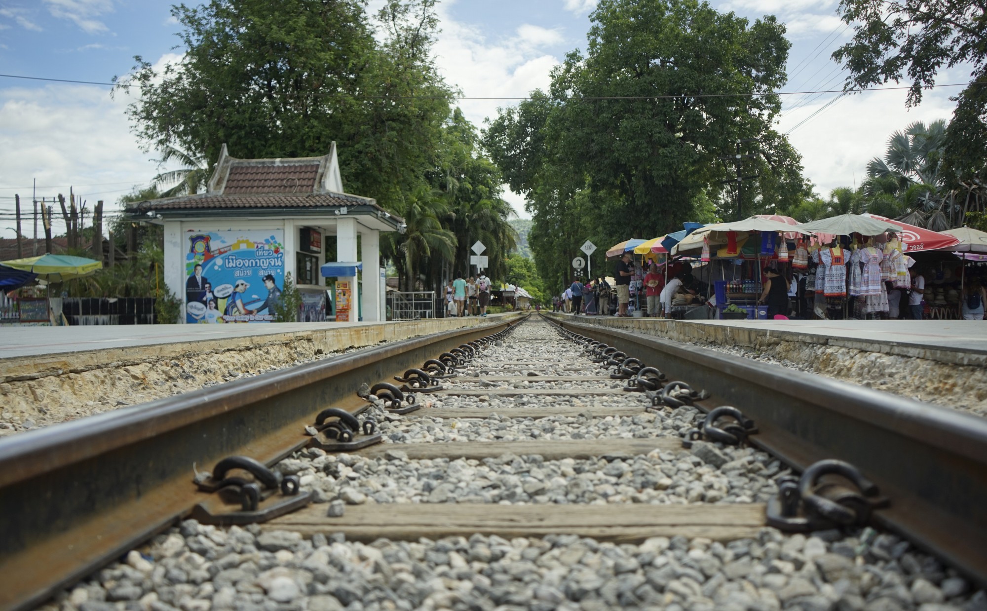 そろそろ乗車予定の泰緬鉄道が到着する時刻なので、クウェーブリッジ駅方面へと移動します。