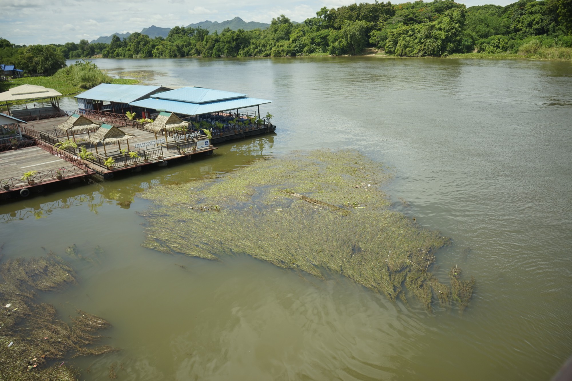 今度は水草が勢い良く生い茂る河川敷のレストランの姿を激写!
