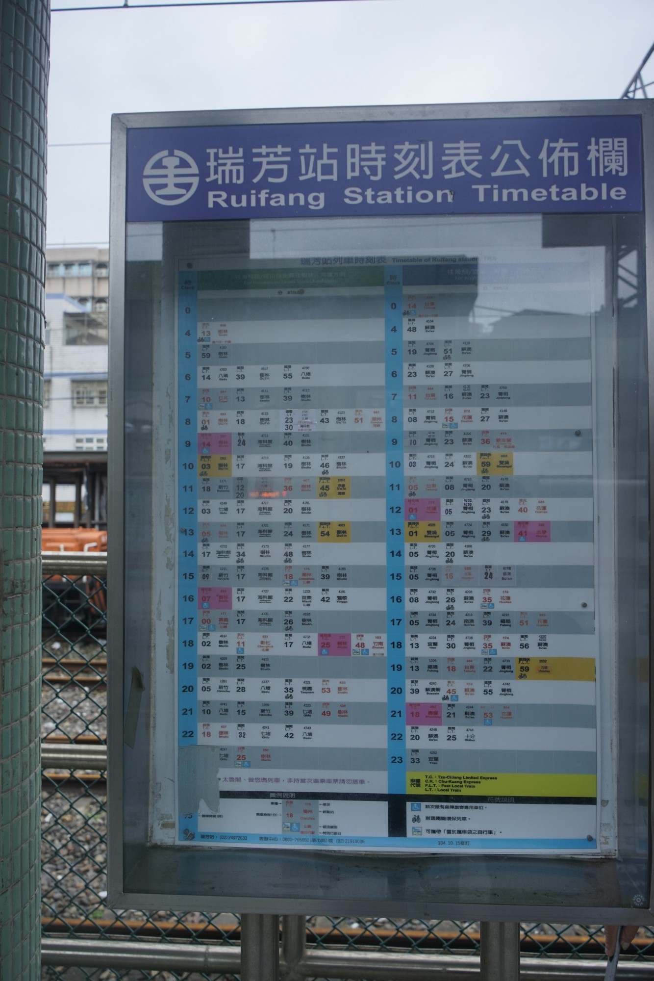 駅構内へと進むと時刻表がありますが、宜蘭線(台北方面へ向かう縦貫線と接続している路線もあり)は比較的本数が多め。